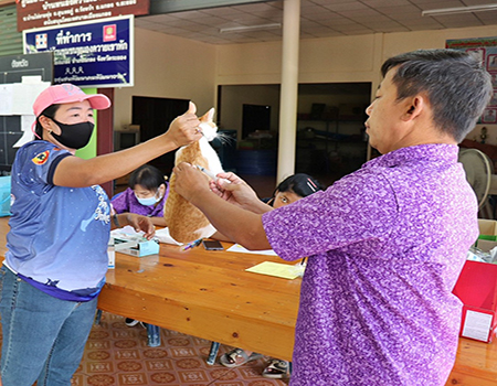 บริการฉีดวัคซีนป้องกันโรคพิษสุนัขบ้าให้กับสุนัขและแมว ในเขตเทศบาลตำบลเมืองแกลง