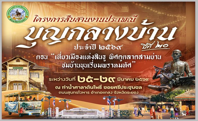 การแสดงดนตรีไทยเทิดพระเกียรติ และพิธีเปิดตลาดสีเขียว : ชมบรรยากาศการค้าขาย ของปลูก ของปลุก ณ ตลาดสีเขียว จากชาวแกลง วังจันทร์ เขาชะเมา และชมการแสดงจากชมรมลีลาศเทศบาลตำบลเมืองแกลง และการแสดงจากชมรมโยคะ และชมการแสดงเยาวชนคนรักษ์ถิ่น(รําฉุยฉาย)