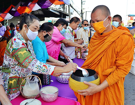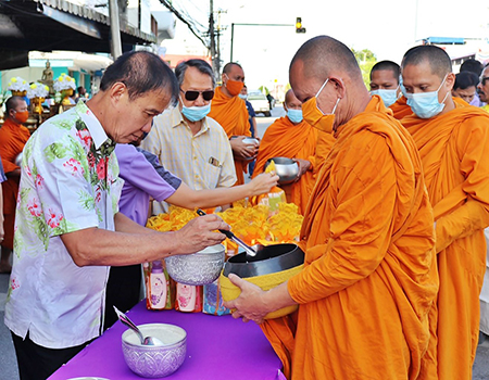 จัดงานพิธีตักบาตรข้าวสารอาหารแห้งในระหว่างพรรษา (ครั้งที่ 3) ประจำปี 2563