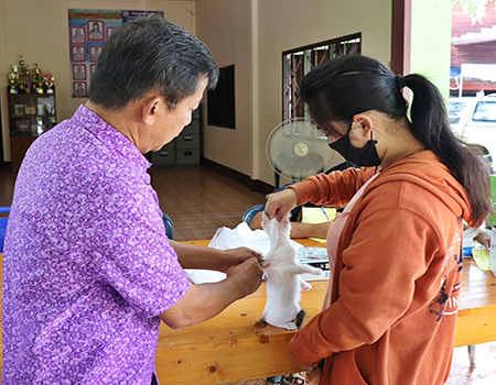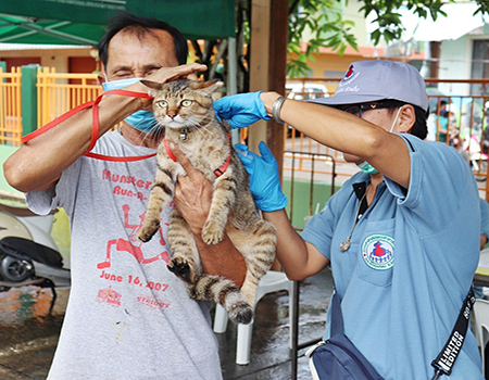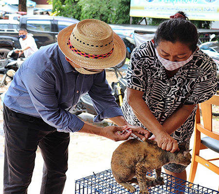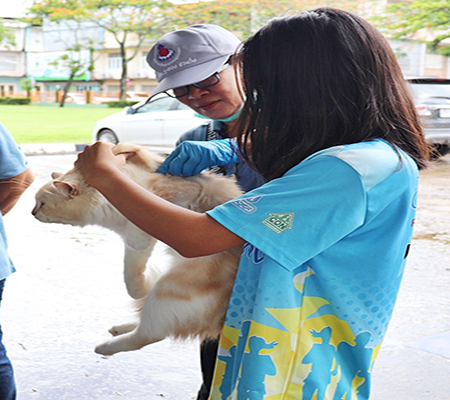 บริการฉีดวัคซีนป้องกันโรคพิษสุนัขบ้าให้กับสุนัขและแมว ในเขตเทศบาลตำบลเมืองแกลง