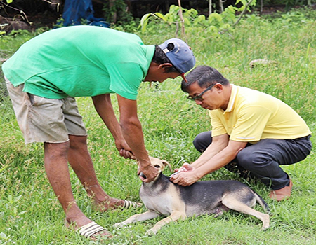 บริการฉีดวัคซีนป้องกันโรคพิษสุนัขบ้าให้กับสุนัขและแมว ในเขตเทศบาลตำบลเมืองแกลง