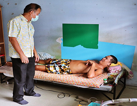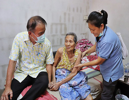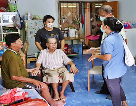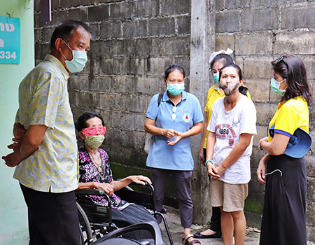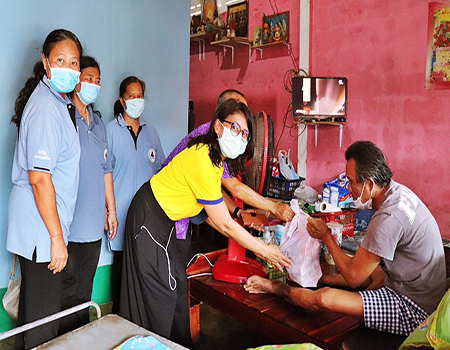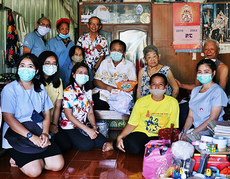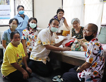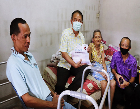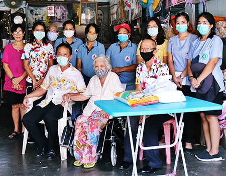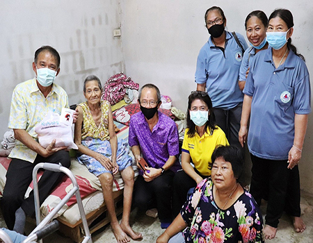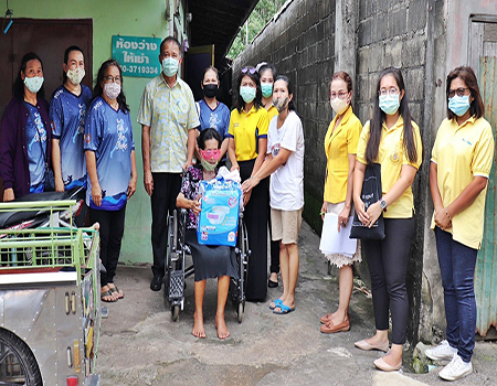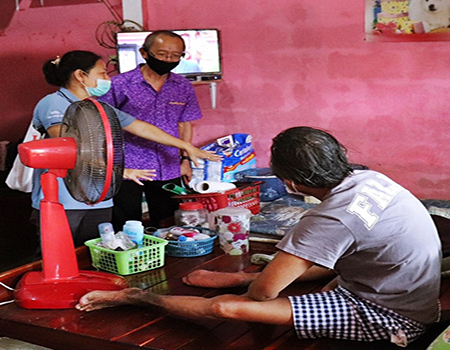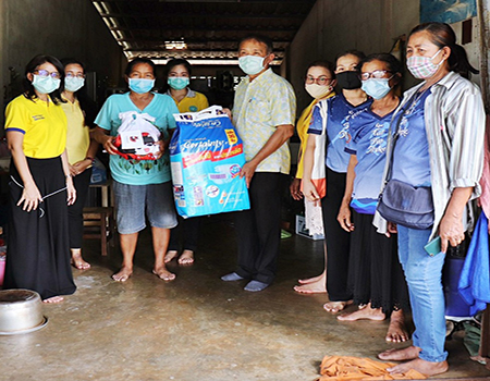 มอบถุงยังชีพ แอลกอฮอล์ล้างมือ และหน้ากากอนามัยให้แก่ผู้ป่วยติดเตียง